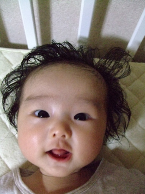 病院の3ヶ月検診で「体重が標準ぎりぎり(少ない)」と言われ、この3ヶ月間、毎日毎日体重のことを気にしながらやってきた。体重以外は、成長も悪くないし特に問題はないのだけれど、保健所の検診でひっかかってしもた。2度も「再検診」になってしまった。今月の検診では「お母さんが心配なら、検査をしてくれる病院を紹介します。」と言われて、少し悩んだ。でも、まだ「ミルクを欲しがるだけあげる。」をやっていないので、紹介はひとまずそれをやって駄目な場合にお願いすることにした。