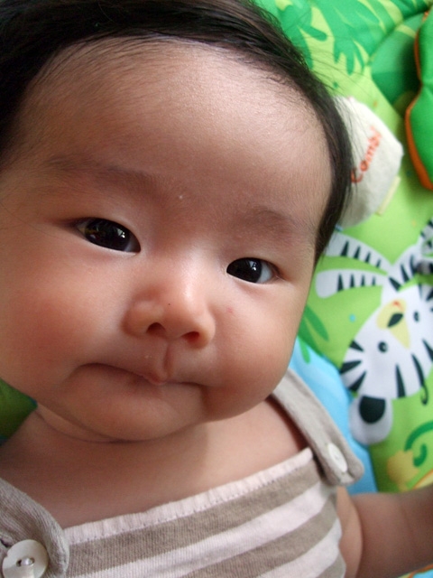 ウーは、やっぱり他の3ヶ月ベビーに比べて小さい・・・。5200gしかなく、待合室で待っている他のママ達に「え?三ヶ月なの?」と驚かれた。予想通り、パイが足りてなかったみたい。先生は「ものすごく悪い体重の伸びではないんだけど、ちょっとギリギリかな。一日1回のミルクを2回に増やす事も考えてみて。」と言われちゃいました(´^`)。どちらかというと肥満を気にしているベビーちゃんが多い中、ウーがものすごく不憫に見えてきた・・・。