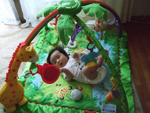 「早くこのしんどい時期が過ぎ去ってくれ〜〜!!」・・・とか思いながら、ようやく来週で3ヶ月目突入。まだ首はすわってません。・・が、物をつかんだり、たて抱っこで支えてやると妙に落ち着くように。もう少し、もう少し。。。