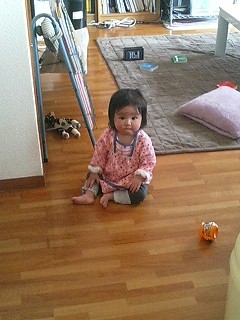 今日、皿洗いしていてふとふり返ったらつかまり立ちしてた