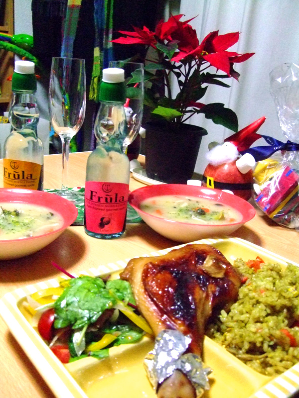 ダも、寝ずに頑張ってた仕事が何とか一段落し、早めに帰ってきてくれたので、それなりのクリスマスディナーができたんじゃないだろうか。